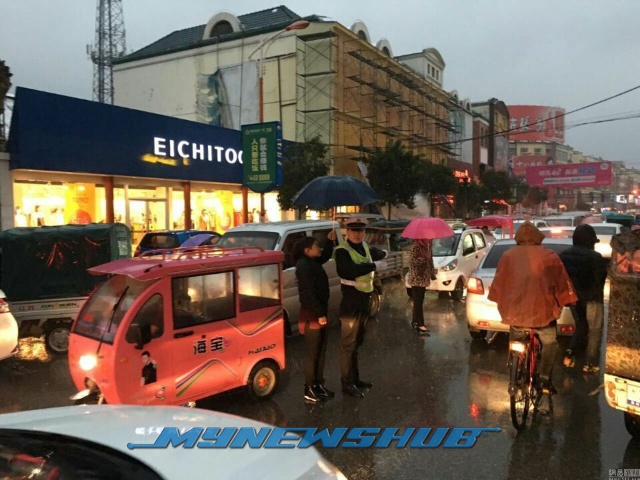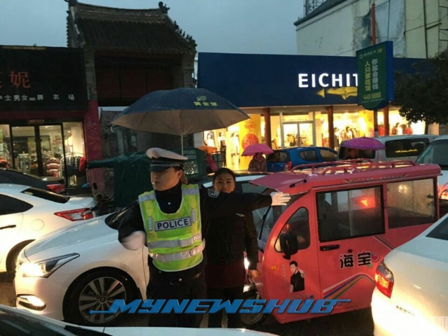 Menurut laporan media tempatan, Wang Zhiheng yang sedang mengawal kesesakan lalu lintas di Shangqiu, wilayah Henan mulanya terkejut dengan kehadiran wanita terbabit.