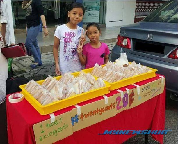SEMUA juadah makanan yang dijual oleh si cilik ini semurah 20 sen!