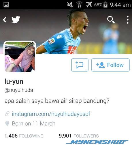 Secara kebetulan, gambar tersebut akhirnya sampai ke pengetahuan tuan empunya badan iaitu Lu-Yun atau @nuyulhuda.