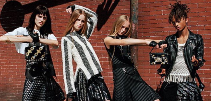 Jaden (paling kanan) memberikan pose yang menarik bersama tiga model lain dalam kempen baharu Louis Vuitton Spring/Summer 2016 ini.