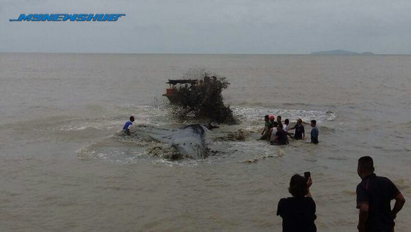 “Ikan paus itu masih lagi hidup. Justeru gerakan menyelamatkan mamalia itu dilakukan dengan bantuan penduduk dan nelayan tempatan. ‎