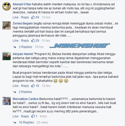 Pengguna Facebook, Muhammad Syafiq Azizan mengecam cadangan menteri itu sebagai cuba menggalakkan perlumbaan membahayakan yang boleh membawa pelbagai masalah sosial lain.