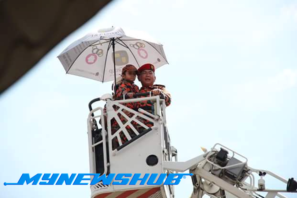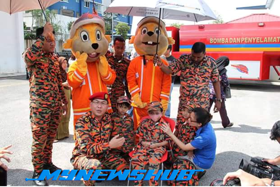 Adik Haris, berpeluang mengabadikan kenangan bersama-sama dengan anggota bomba yang terlibat semasa acara itu berlangsung.