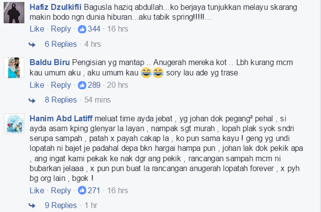 3. Tak perlu ada Johan,cukup nabil ng lopa tu je,bila ada johan mula la merapu2 meleret2, sikit2 nak tunjuk drama mesra laki bini,dah show kat IG tak pyh la nak show kat public,mcm korang je psangan serasi kunun.poyo la si bini nak enterprem,tak laku masih nak show off.