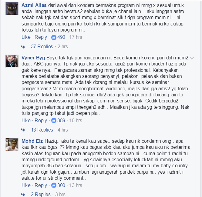 Bukan itu sahaja, malah penonton juga kecewa dengan cubaan Astro untuk membuat kejutan dengan menampilkan ‘Malique’ menerusi lagu duetnya bersama Dayang Nurfaizah berjudul Pejamkan Mata.
