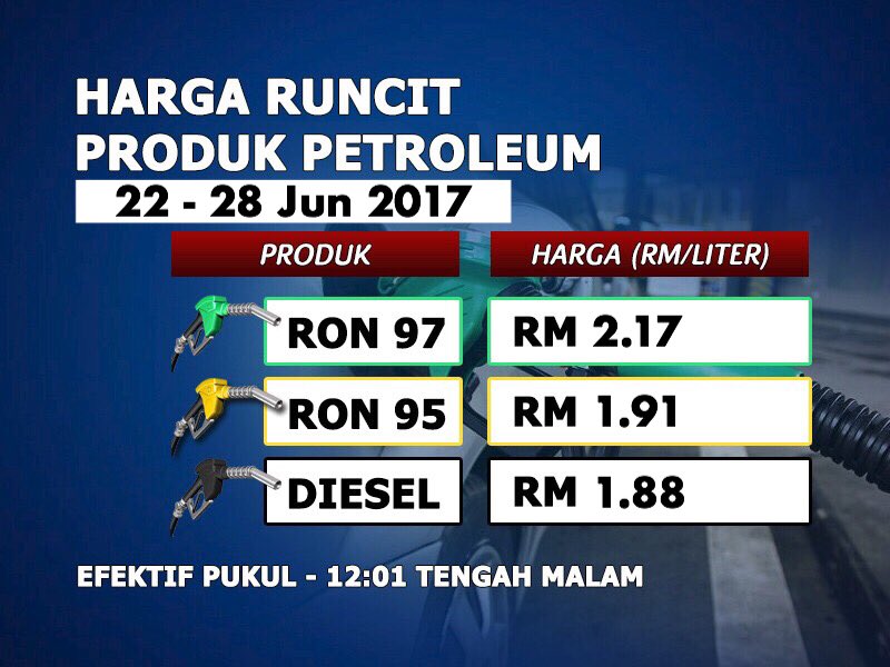 Stesen penyiaran awam kebangsaan berkenaan melaporkan bahawa kesemua harga siling baharu untuk produk petroleum tersebut bermula dari pukul 12.01 tengah malam 22 Jun sehingga 11.59 malam 28 Jun depan.