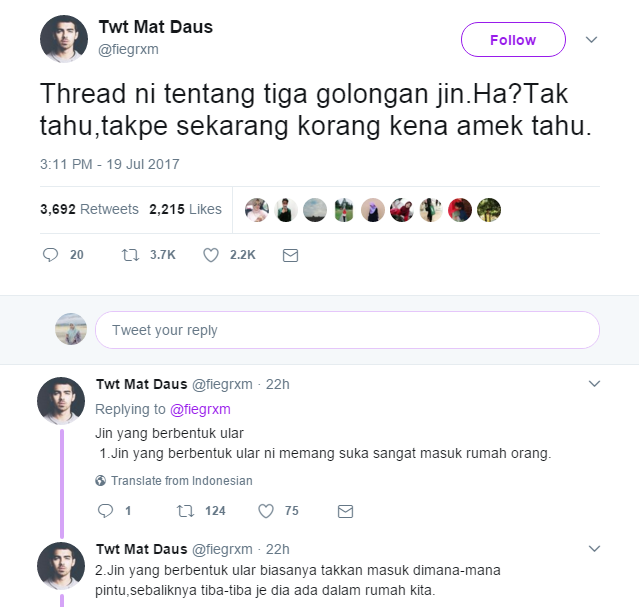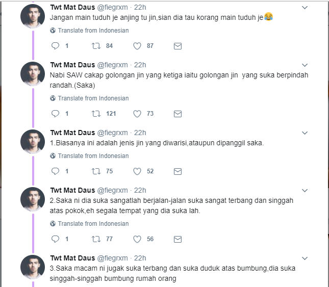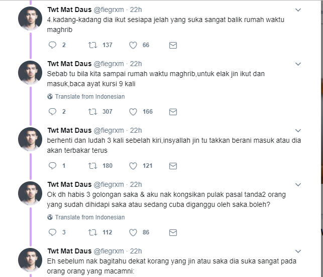 Namun tidak ramai tahu kisah di sebaliknya dan seorang netizen bernama Daus, berkongsi menerusi laman Twitter miliknya semalam tentang golongan jin selain juga manusia yang digemari oleh saka.
