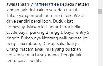 Bagaimanapun, ekoran terlalu asyik berkongsi kegembiraan tersebut, terdapat satu komen netizen menerusi satu gambar yang dimuat naik oleh Scha membuatkan Awal bengang.