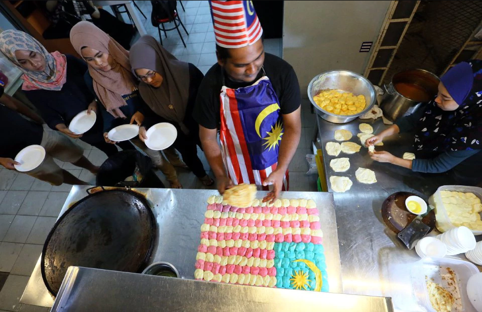 Tidak kurang hebat juga sokongan yang diberikan daripada pengusaha-pengusaha kedai makan. Baru-baru ini, seorang wanita telah berkongsi kreativitinya dengan menghasilkan roti jala berwarna mengikut Jalur Gemilang dan disusun seperti bendera Malaysia itu.