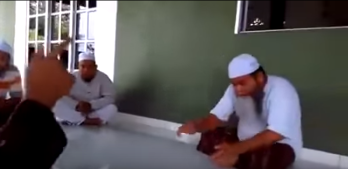 Video yang berdurasi kurang daripada tiga minit itu menunjukkan seorang lelaki yang memakai baju berwarna putih dan kain pelikat sedang bertengkar dengan dua orang ustaz di hadapannya ketika dalam satu majlis ilmu.