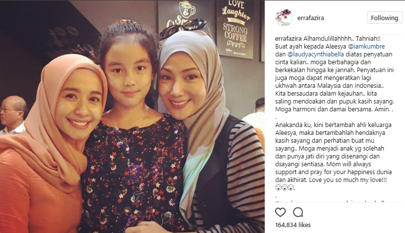“Alhamdulillahhhh.. Tahniah!! Buat ayah kepada Aleesya @iamkumbre dan @laudyacynthiabella diatas penyatuan cinta kalian.. moga berbahagia dan berkekalan hingga ke jannah.