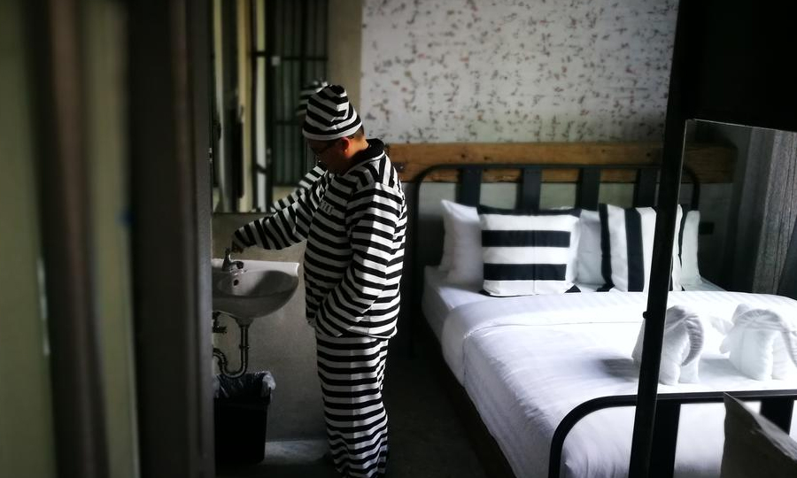 Untuk mendapatkan suasana sama seperti penjara, persekitarannya juga direka sama seperti tempat tinggal banduan itu seperti pintu besi yang berwarna hitam dan tingkap bilik yang kecil. Apa yang menariknya, pengunjung yang menginap di hotel ini turut diberikan pakaian belang hitam putih sama seperti pakaian banduan. Menarik bukan?