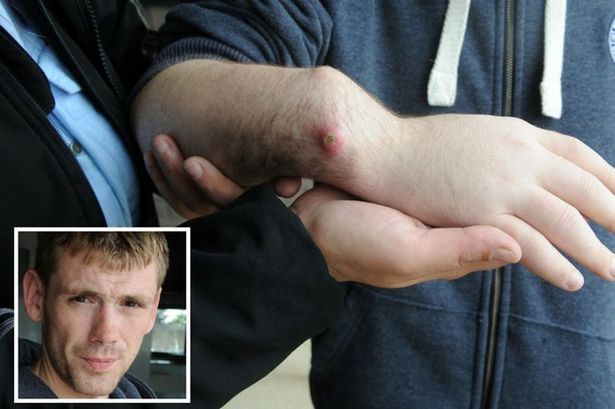 Namun selepas diserang lelaki berkenaan, pin itu mencucuk di kulitnya dan tangan Michael menjadi seperti bentuk ‘zig-zag’.