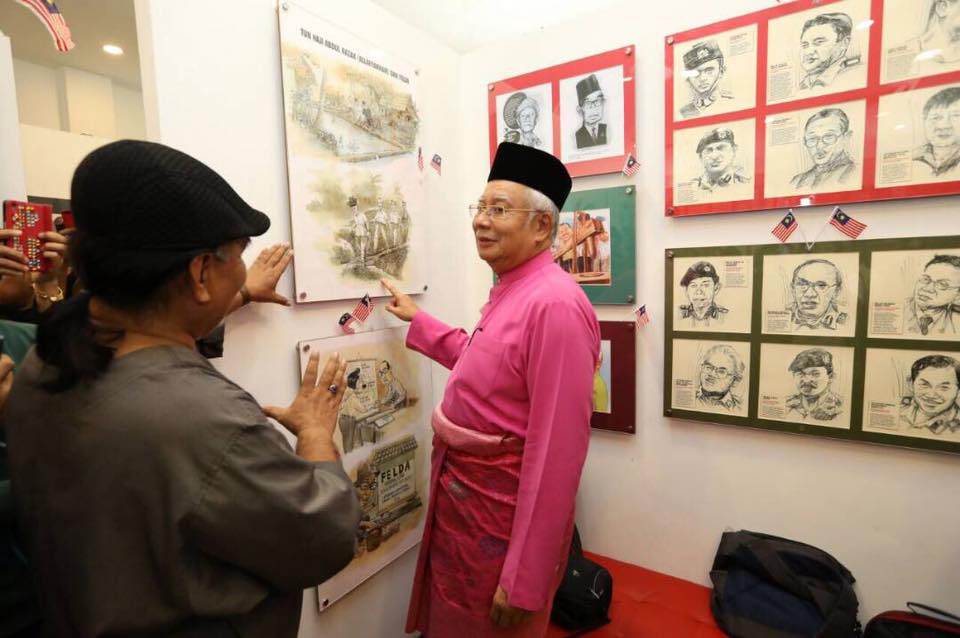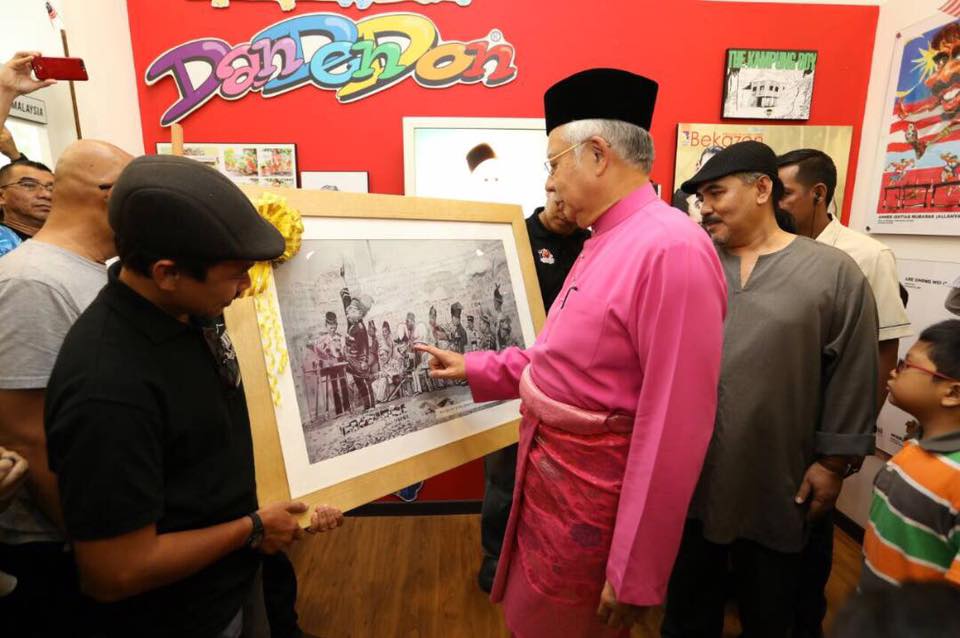 “Terima kasih Datuk Sri Mohd. Najib kerana sudi singgah di Rumah Kartun dan Komik Malaysia pada tengah hari tadi. Kehadiran yang mengejutkan ramai kartunis dan pengunjung yang kebetulan berada di situ.