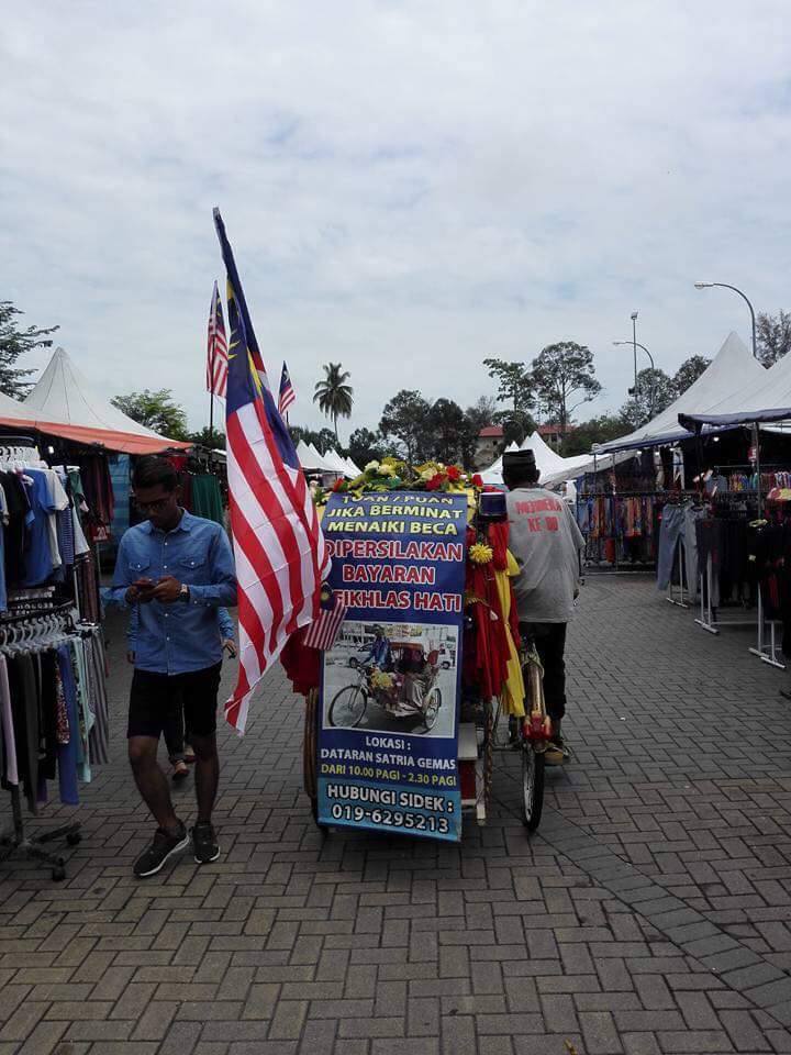 Dia juga tidak menetapkan sebarang bayaran kepada sesiapa yang ingin menaiki becanya. Hanya bayaran ikhlas yang diperlukan. Jika perasan, becanya juga turut diletakkan Jalur Gemilang.