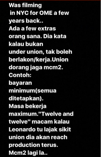 “Mereka buat begitu untuk mengutamakan pelakon-pelakon tempatan mereka. Kita perlu ada badan yang kawal dan beri lesen iaitu kad ahli kepada pelakon yang ingin aktif dalam industri,” ujarnya.