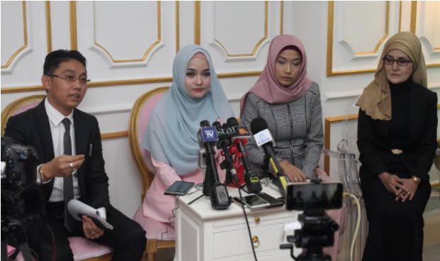 Turut kelihatan ketika sidang media itu ialah peguam syarie yang mewakili dirinya, Aznor Syuhada dan Muhammad Nur Hafiz Roslan bersama dengan ibu dan kakaknya.