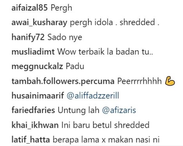 Foto tersebut memaparkan Sam atau nama sebenarnya, Shaheizy Sam Abdul Samad sedang menayangkan bentuk badan terbarunya di depan sebuah cermin.
