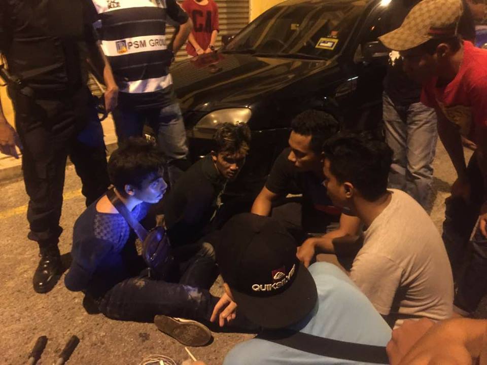 Menurut Afzulnizam Aris, dia yang memuat naik gambar dan video kejadian berkata, ketika mereka cuba menahan dua lelaki itu, salah seorang daripadanya cuba melibas batang besi ke arah mereka.