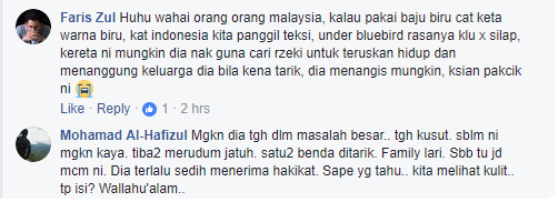 Namun, rata-rata netizen yang meninggalkan komen semuanya bersimpati atas nasib pemandu teksi tersebut.