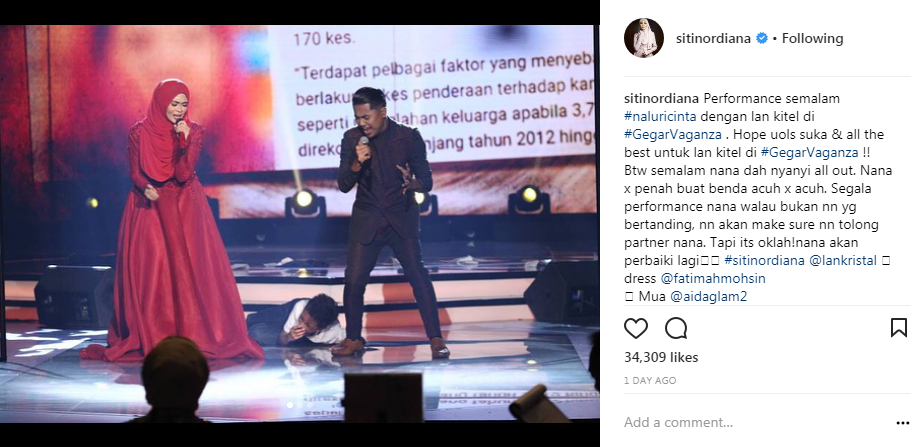 “By the way, semalam (Ahad) Nana dah nyanyi all out. Nana tak pernah buat benda acuh tak acuh.