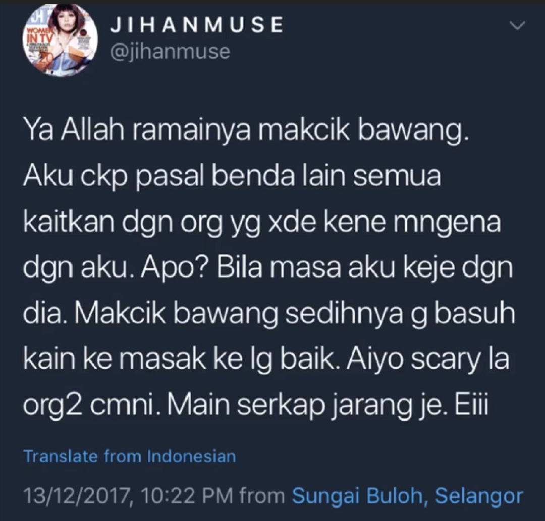 Menerusi posting berkenaan, secara berseloroh pengacara berkata tweet itu untuk individu lain dan mengakui kesal dan tertekan terhadap kritikan netizen yang suka membuat tuduhan melulu.