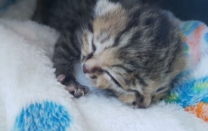 Lapor Newsweek, kucing betina itu menghadapi kesukaran pada awal kelahirannya akibat komplikasi semasa menyusu, jadi ia dikhuatiri akan mati kelaparan.