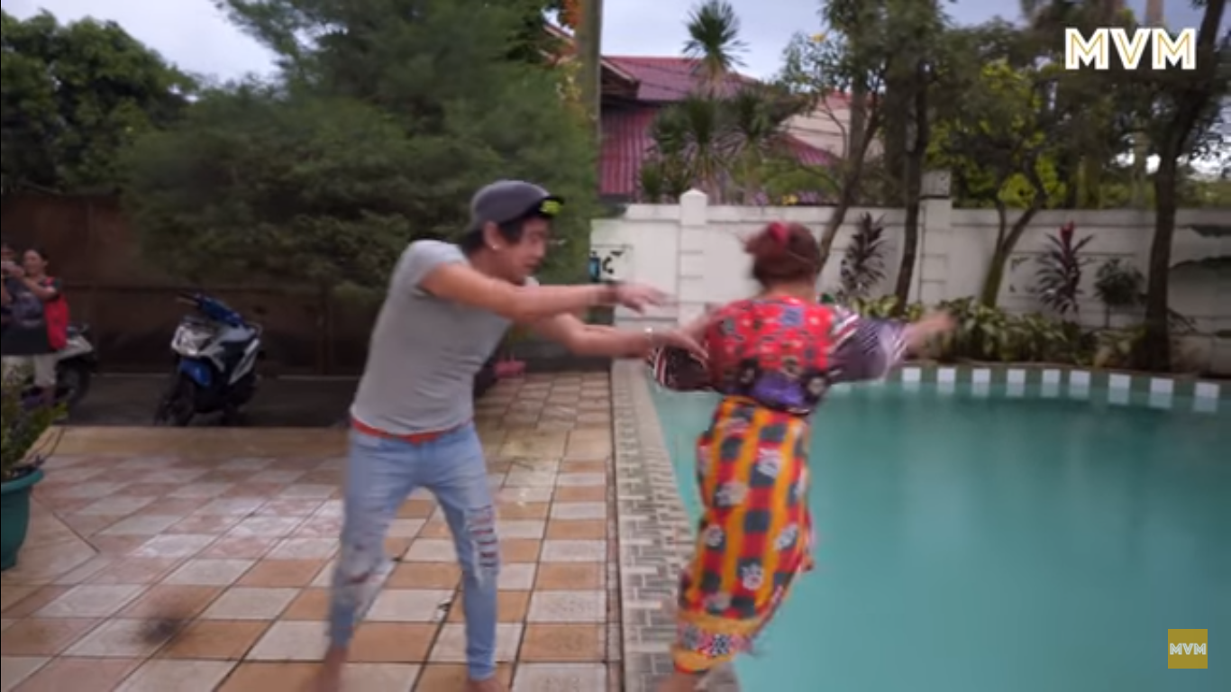 Dalam situasi mereka yang sedang berada di tepi kolam itu, Ian terus mengambil peluang keemasan tersebut untuk menolak Upiak masuk ke dalam kolam di rumahnya.