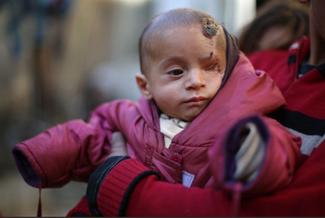 Jelas sumber lagi, bayi malang tersebut kehilangan mata kiri manakala ibunya syahid dengan serta-merta selepas kediaman mereka di Hammuriye, timur Ghouta dibom oleh tentera rejim.