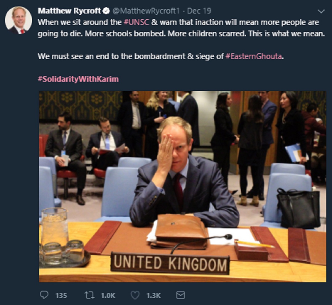 “Semasa kita duduk di Majlis Keselamatan PBB dan beri amaran lebih ramai akan terkorban, lebih banyak sekolah dibom, lebih banyak kanak-kanak berparut. Ini maksud kami,” tulisnya di laman Twitter.