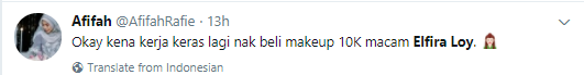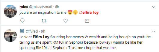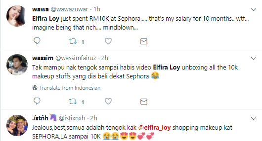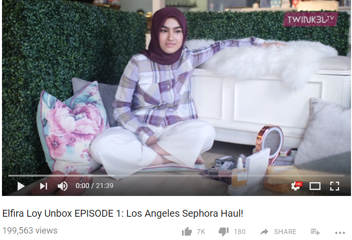 Itulah yang dikatakan oleh pemilik nama sebenar, Nurul Elfira Loy Ahmad Sabri, 23 itu menerusi video Unboxing Los Angeles Sephora Haul yang dimuat naik di dalam akaun YouTube miliknya, Twink3l TV pada Sabtu lepas.