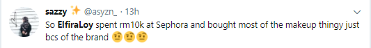 “Saya habiskan hampir RM10,000 dekat Sephora, mampus! Tak tahu lah kenapa jadi macam ni. Tapi sebabkan dah sampai kaunter, kita terima je lah!”