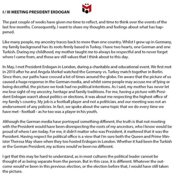 Sebahagian surat terbuka dari Ozil.