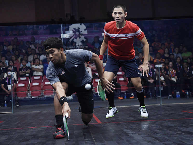 Perseorangan ketiga negara, yang juga bekas juara remaja dunia, Ng Eain Yow mengesahkan pingat emas menjadi milik Malaysia apabila mengejutkan juara perseorangan Sukan Asia 2018, Leo Au Chun Ming, dalam straight set 11-7, 11-7, 11-4 pada perlawanan ketiga.