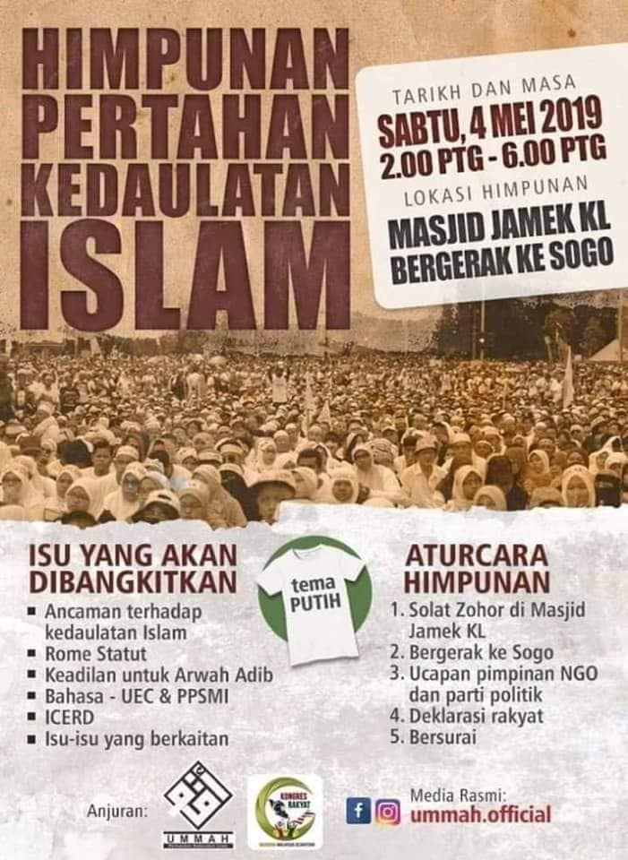 Semalam, Gerakan Pembela Ummah (Ummah) mengumumkan akan menganjurkan Himpunan Pertahan Kedaulatan Islam (405), di luar pekarangan pusat beli-belah Sogo, Kuala Lumpur, Sabtu ini.