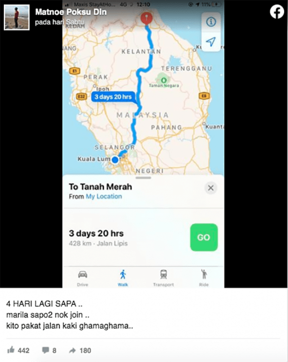 “Suami aku buat kerja gila, jalan kaki balik kampung. Sekarang ni dalam perjalanan ke Gerik.