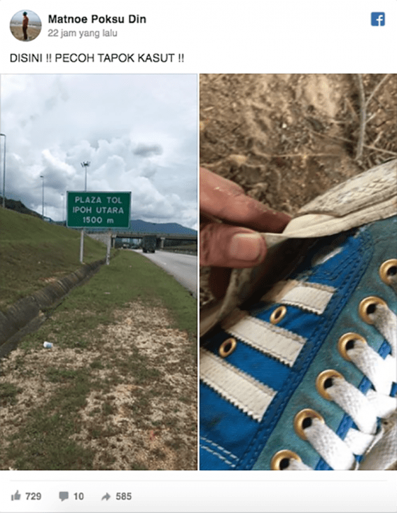 Lelaki berkenaan turut memaklumkan sepanjang perjalanan di Lebuhraya PLUS, dia cuba menumpang lori untuk menumpang balik, namun gagal.