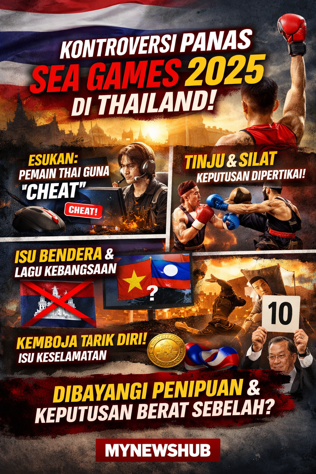 BANGKOK: Penganjuran Sukan SEA 2025 di Thailand kini berdepan pelbagai kontroversi susulan beberapa insiden yang mencetuskan persoalan terhadap integriti pertandingan, termasuk satu kes penipuan yang disahkan melibatkan atlet tuan rumah sendiri.