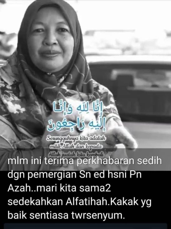 Suami mangsa yang berusia 64 tahun dan memandu Proton Saga turut mengalami kecederaan parah di bahagian dada dan kaki, dan kini masih menerima rawatan di Zon Merah HSNI.