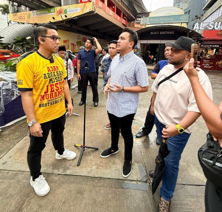 KUALA LUMPUR – Pemuda UMNO Wilayah Persekutuan turun padang di Bukit Bintang semalam bagi menyatakan sokongan kepada usaha dakwah Firdaus Wong Wai Hung.