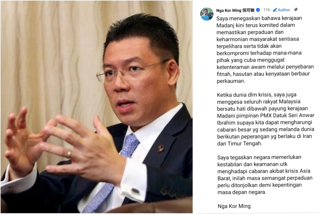 “Ketika dunia dalam krisis, saya juga menggesa seluruh rakyat Malaysia bersatu hati di bawah ‘payung’ Kerajaan Madani pimpinan PMX supaya kita dapat mengharungi cabaran besar yang sedang melanda dunia berikutan peperangan yang berlaku di Iran dan Timur Tengah.