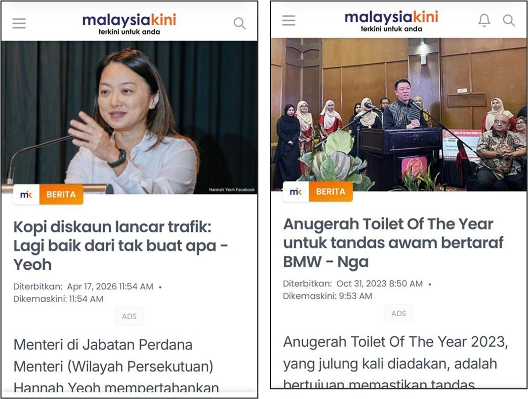 Belajarlah daripada Koming dengan Anugerah Toilet of the Year (TOTYA) dia.