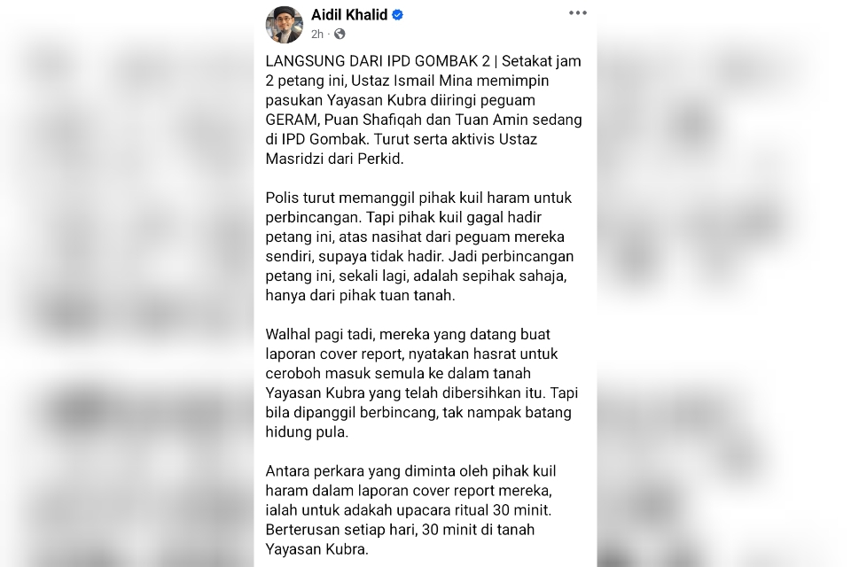 Aidil berkata, pihak berkuasa meminta hantaran di media sosial tidak mengapi-apikan isu tersebut memandangkan belum lagi ada sebarang pencerobohan semula ke atas tanah Yayasan Kubra.